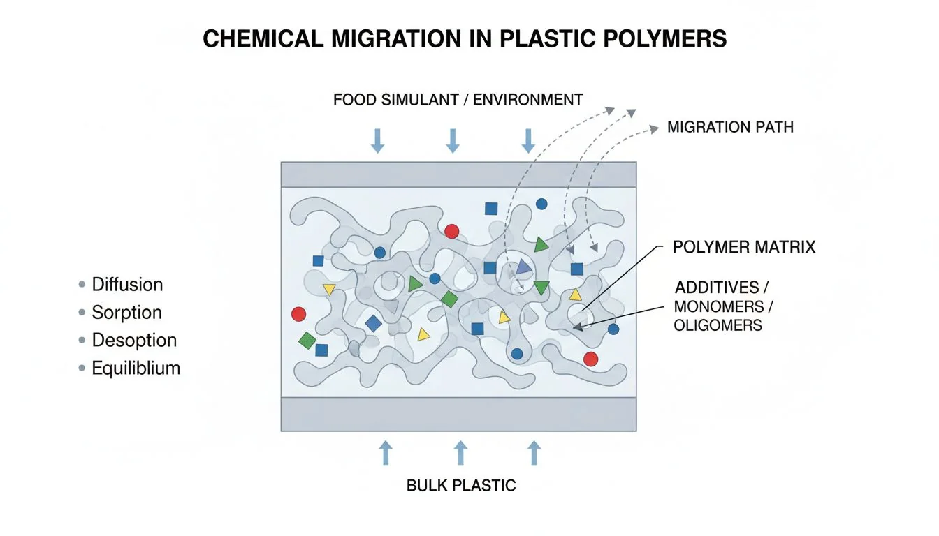 Leaching is not a mystery; it is physics. We call this "Chemical Migration." It happens when molecules move from a high concentration (the plastic) to a low concentration (the water).